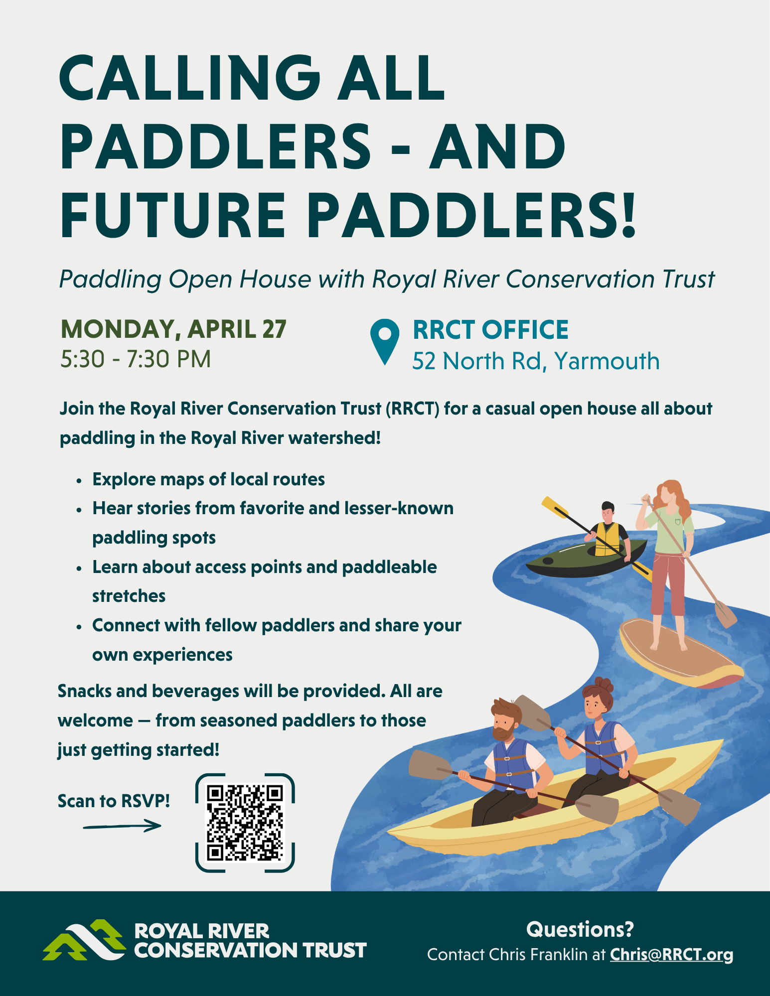 Join us for a casual open house for paddlers of all experience levels—including those who are just getting started. This gathering is a chance to explore the many paddling opportunities throughout the Royal River watershed and connect with others who love being on the water.