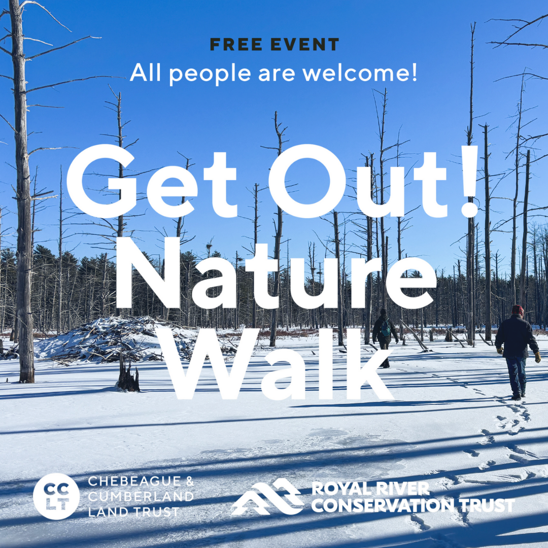 Get Out! Nature Walks are volunteer-led regular trips with trained master naturalists. Join us for a well-planned, no cost, guided adventure. Monthly on the fourth Wednesday; always free; rain, snow, or shine. Jointly offered by both Chebeague & Cumberland Land Trust and Royal River Conservation Trust, the walks take place at preserves in the towns of Chebeague Island, Cumberland, Yarmouth, North Yarmouth, Pownal, New Gloucester, and Durham. Our curriculum is targeted at adults and engaged youth. Because the purpose is nature observation, we ask that dogs do not join us. Email CCLT with any questions.