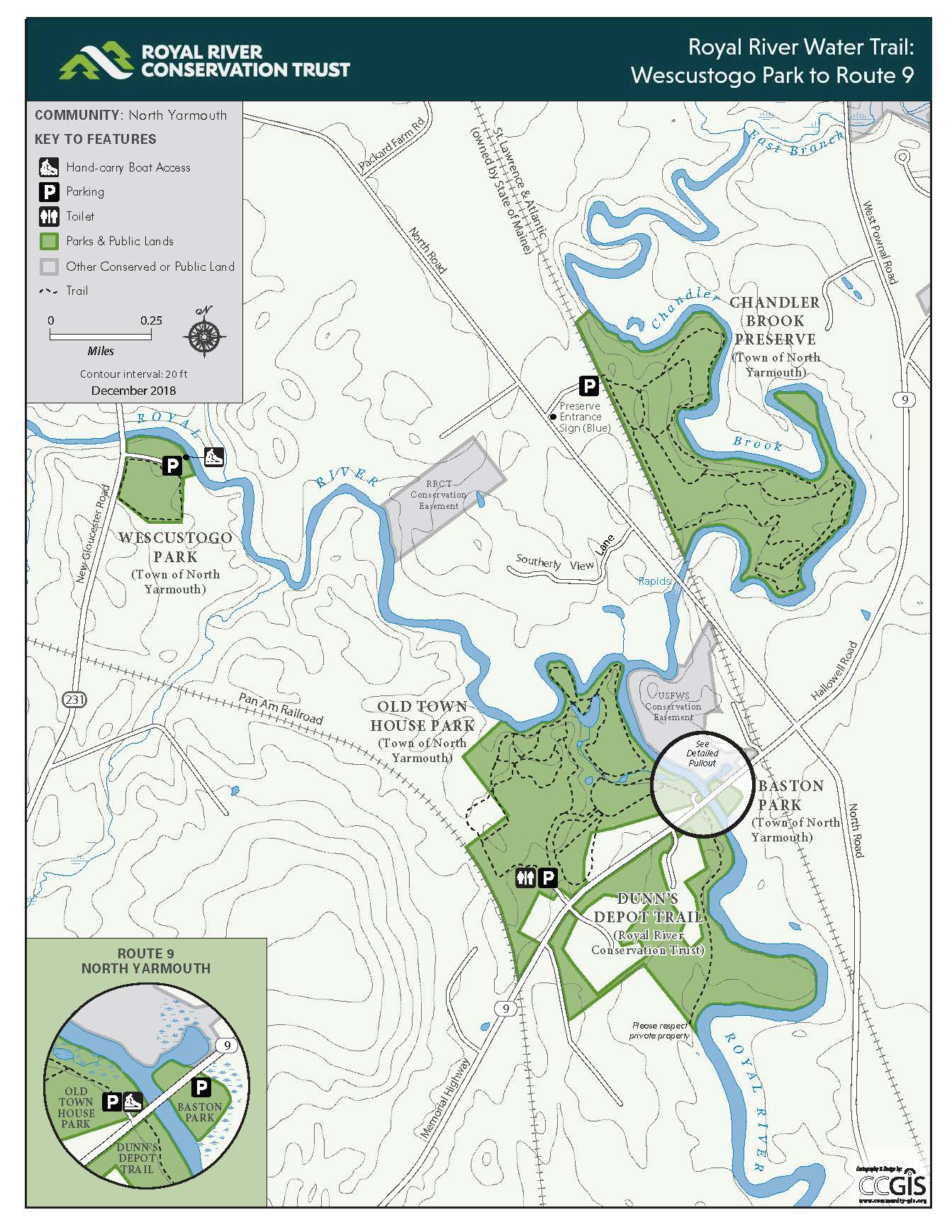 - Old Town House Park, North Yarmouth to Milliken Road, North Yarmouth: Paddle north through the short rapids by the North Road bridge until you reach the strainers at Milliken Road just above the confluence with the East Branch.